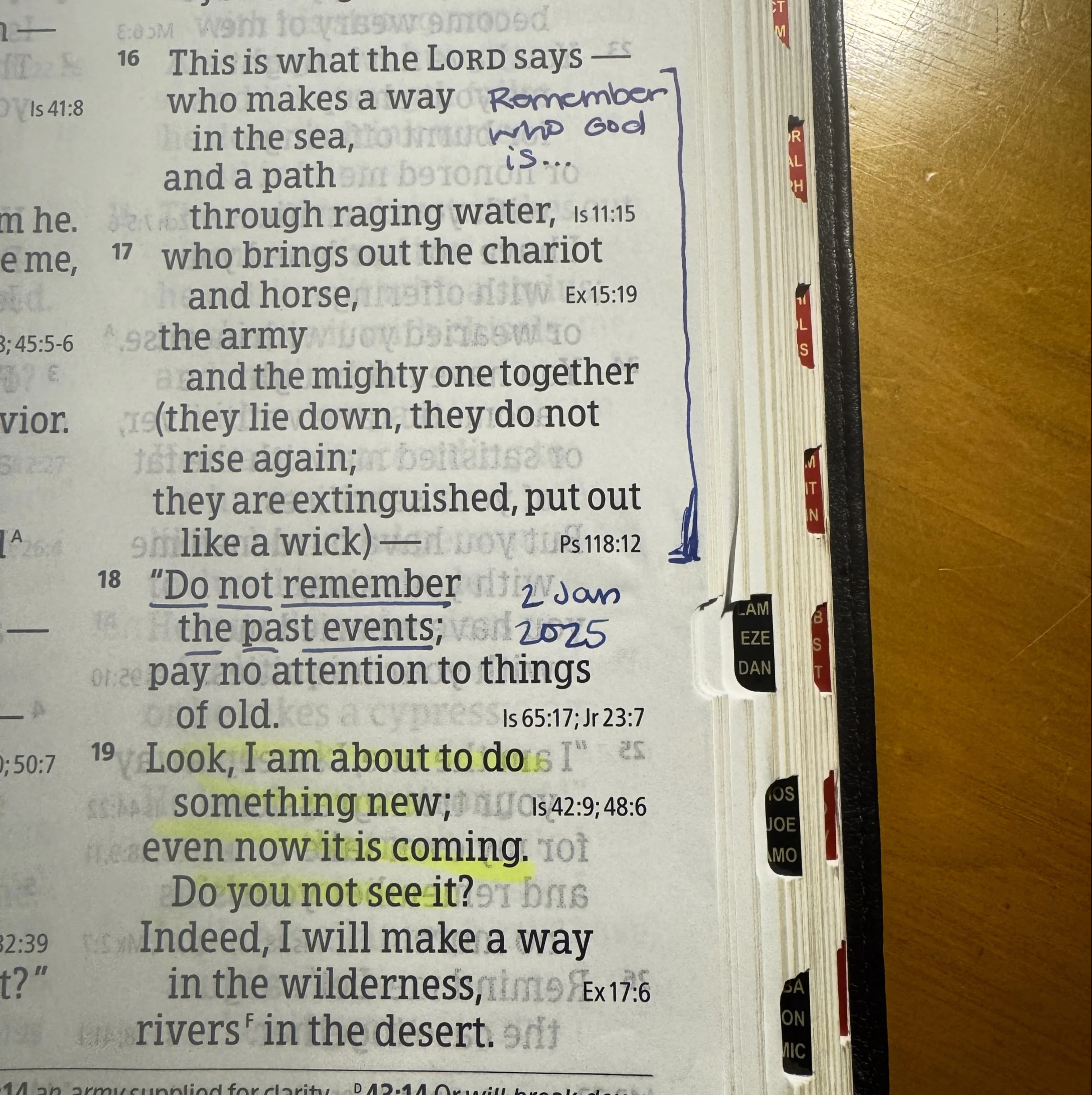 This familiar passage in Isaiah 43 was part of my Bible reading plan yesterday. I made a note on the page on the second day of January this year.